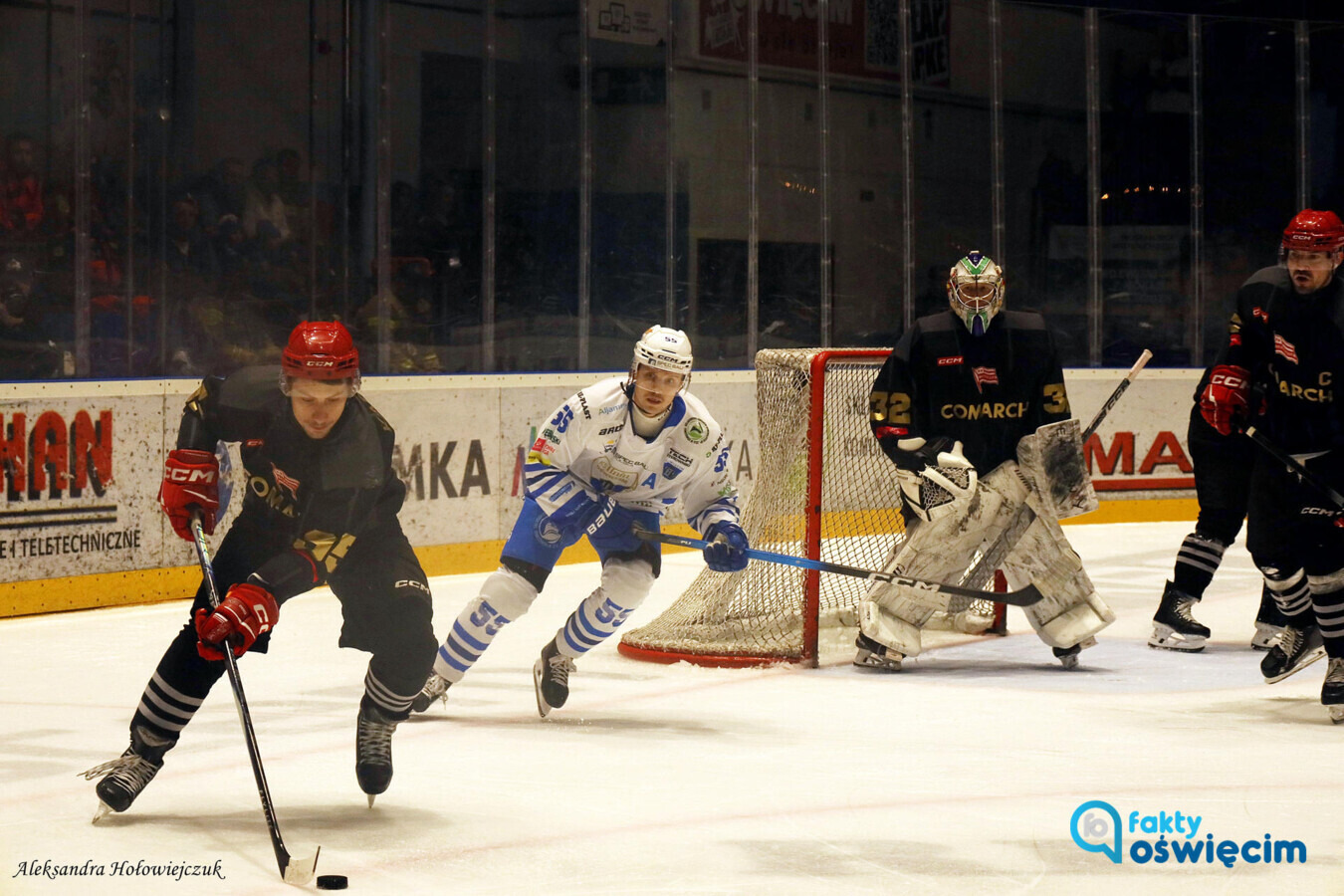 Derbowe starcie było doskonałą okazją do podziękowania braciom - Sebastianowi i Robertowi Kowalówkom, którzy postanowili już „zawiesić łyżwy na kołku”. Obaj są wychowankami Unii, którzy przez wiele sezonów reprezentowali także biało-czerwone barwy Pasów. Pierwsza i druga tercja nie przyniosły goli, choć jedni i drudzy mogli otworzyć wynik. Goście zmarnowali jeden okres gry w przewadze (na ławce Kacper Prokopiak), a z kolei oświęcimianie nie zdołali wykorzystać 2-mintowych odsiadek Antoniego Dziurdzi oraz Macieja Kruczka. Wszystko rozstrzygało się zatem w ostatnich 20 minutach. I znowu mieliśmy powtórkę z wcześniejszych 40 minut. Obie drużyny miały olbrzymie problemy ze skutecznością, a bezbramkowy rezultat utrzymał się aż do 58 minuty. Wówczas podopieczni Roberta Kalabera wyprowadzili nokautujący cios. Idealnie zza bramki dograł Mika Partanen, a Roman Diukow posłał krążek przy słupku do bramki. Goście szukali jeszcze szansy doprowadzenia do dogrywki za sprawą manewru z wycofaniem bramkarza, ale jednobramkowy wynik już się nie zmienił. Biało-niebiescy w szczęśliwych okolicznościach pokonali Cracovię 1:0. Pojutrze (wtorek) te zespoły ponownie skrzyżują kije. Mecz w Oświęcimiu otworzy piątą rundę sezonu zasadniczego. Początek piątkowego pojedynku zaplanowano na godz. 18. Będzie on bezpośrednio transmitowany przez TVP Sport. W pozostałych meczach XXXVI kolejki PHL: ECB Zagłębie Sosnowiec - JKH GKS Jastrzębie 2:3 (1:3, 1:0, 0:0) BS Polonia Bytom - GKS Tychy 3:4 (1:3, 0:1, 2:0) GKS Katowice - STS Sanok (przełożony na 17 lutego) Pauzuje: KH Energa Toruń Unia Oświęcim - Comarch Cracovia 1:0 (0:0, 0:0, 1:0) Bramka: 1:0 Diukow (Partanen, Heikkinen) 57.39. Sędziowali: Bartosz Kaczmarek, Paweł Breske (główni), Piotr Podlas, Kamil Wiwatowski (liniowi). Kary: 2 i 6 minut. Widzów: 2.000. Unia: Lundin - Soderberg, Morrow, Moutrey, Olsson Trkulja, Peresunko - Scarlett, Diukow, Partanen, Heikkinen, Ahopelto - Mościcki, Kubes, Kasperlik, Galant, Petras - Ziober, Matthews, Prusak, Prokopiak, Kusak. Trener: Robert Kalaber.
