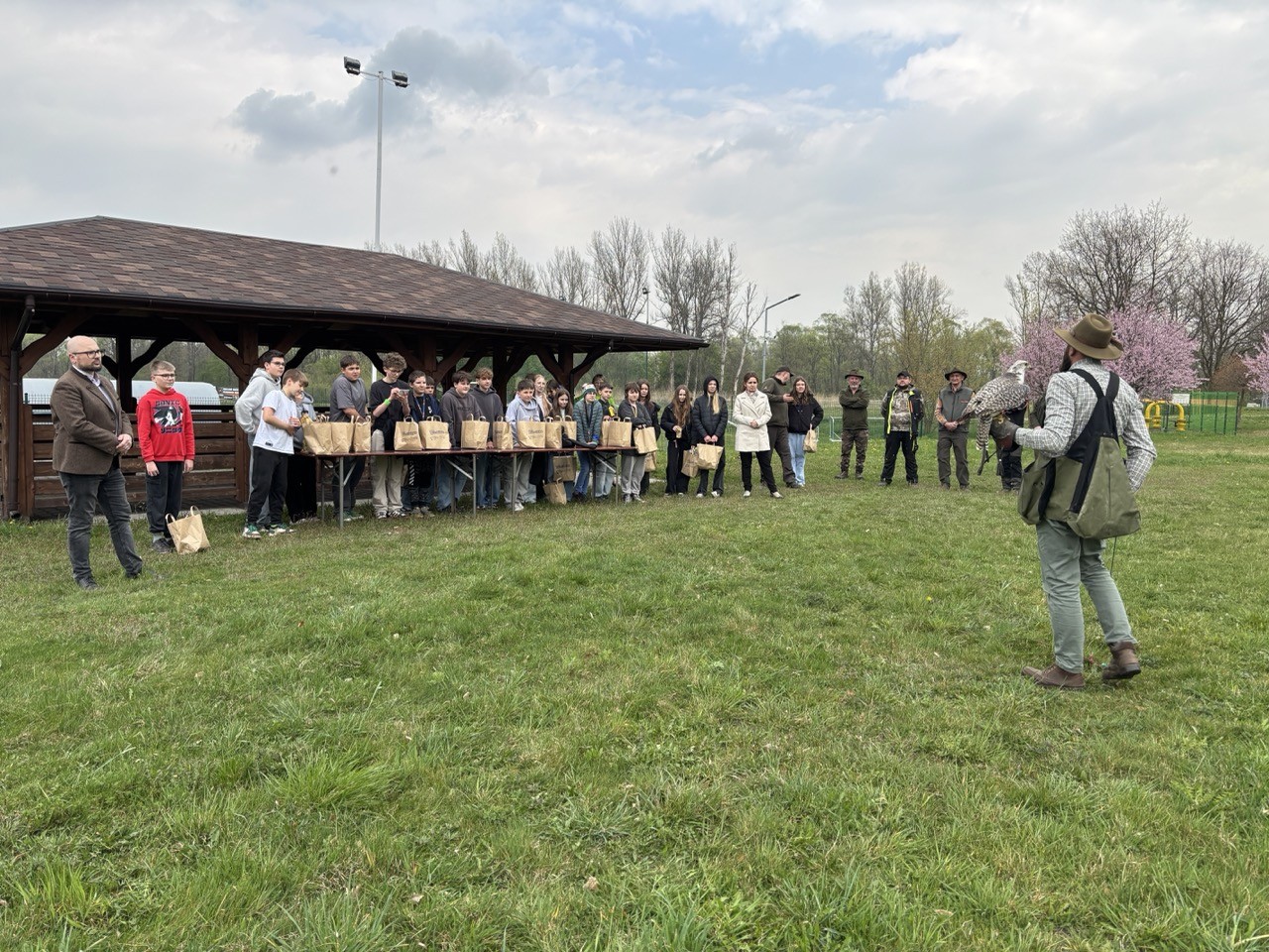 Dodatkową atrakcją był pokaz sokolniczy, który poprowadził Tomasz Bylica z Koła Łowieckiego „Orzeł” w Myślenicach. Pokaz wzbudził duże zainteresowanie, szczególnie wśród dzieci, które mogły z bliska zobaczyć ptaki drapieżne oraz poznać tajniki pracy sokolnika i wielowiekową tradycję sokolnictwa.