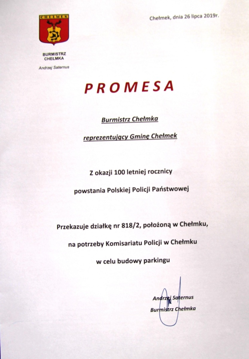 Policjanci otrzymali prezent na Święto Policji. Jest to działka pod budowę parkingu