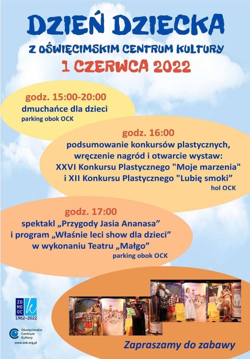 Oświęcimskie Centrum Kultury zaprasza 1 czerwca 2022 roku do wspólnego spędzenia czasu w ramach Dnia Dziecka.