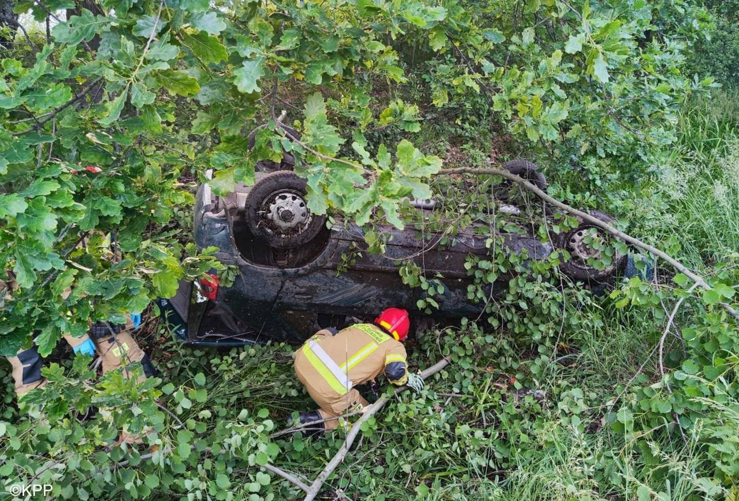 Dachowanie młodego kierowcy. Wiózł cztery osoby – FOTO